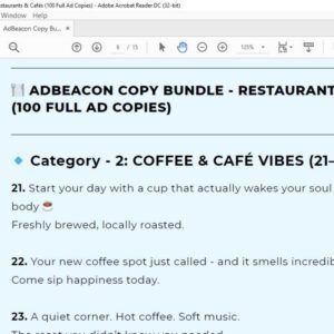 100 complete, ready-to-use ad copies written for restaurant & cafe & café marketing.