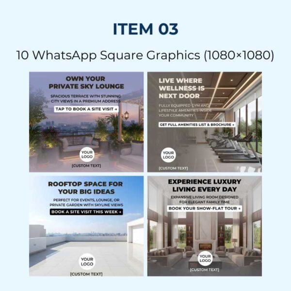 Use them for new launches, price announcements, amenities, interiors, construction updates and offers.