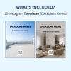 10 Instagram Templates (Editable in Canva) – post layouts for listings, offers, testimonials, and branding