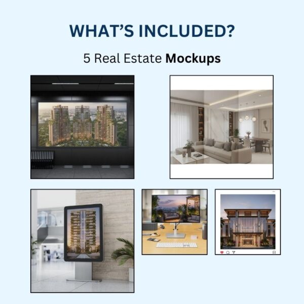5 Real Estate Mockups (Editable in Canva) – show your designs on devices, hoardings, and presentation frames