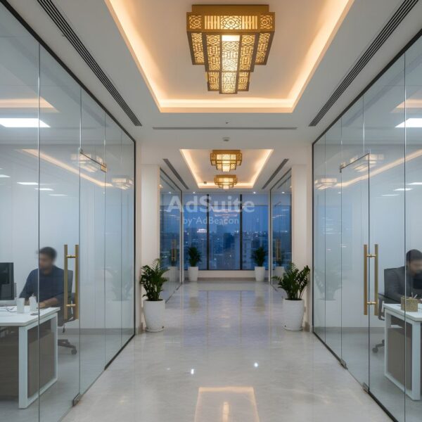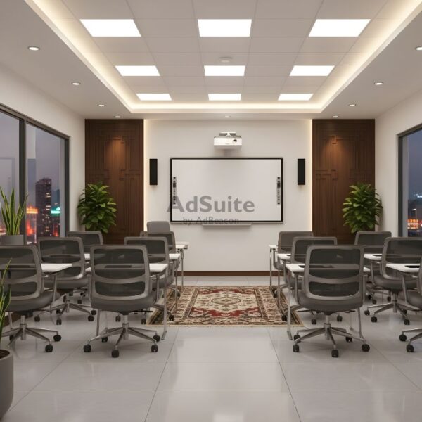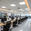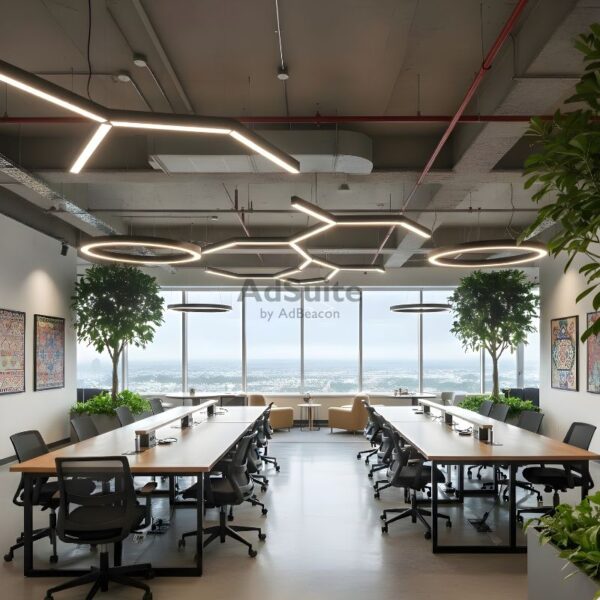 - Spaces: Workstations, meeting rooms, reception, lobby, collaboration areas